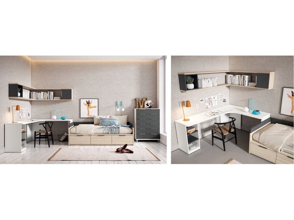 Dormitorio juvenil moderno, un dormitorio adaptado a todas las últimas tecnologías, con luces Led, enchufes USB, muebles Gamer.