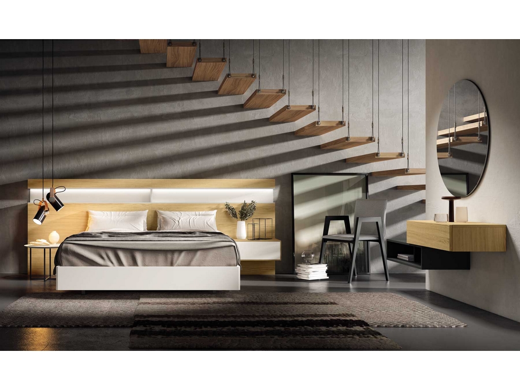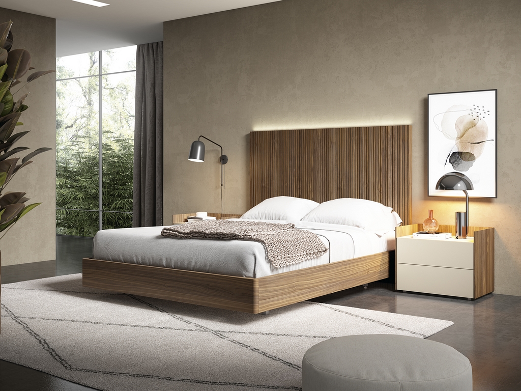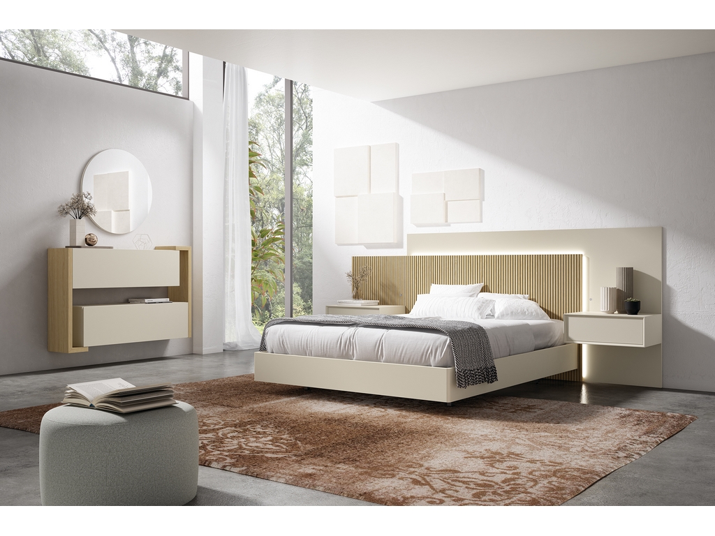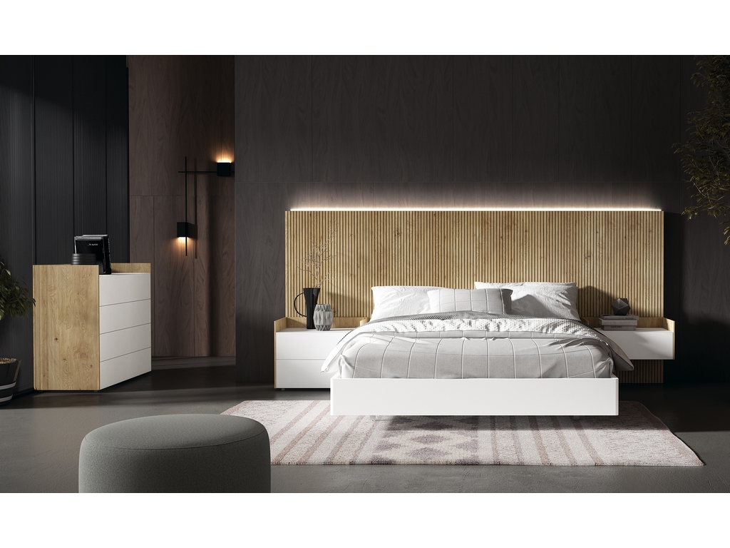 Dormitorio moderno, es minimalista, sencillo, con limpieza visual, líneas rectas. Donde se combinan las diferentes nuevas tecnologías, de luces Led y sonido.