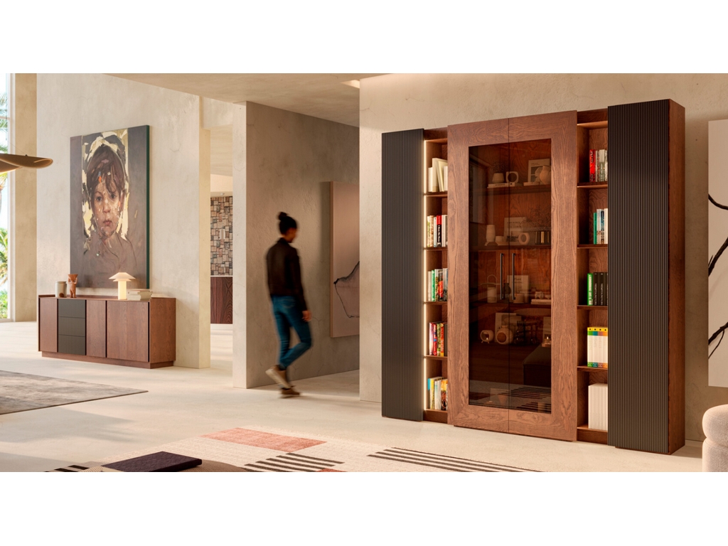 Roble, Cerezo, Nogal y Pino macizo son los materiales de referencia, en una amplia gama de tonalidades y acabados, además los detalles de cuero, cristal o formas le permitirán darles un toque personal y diferente del resto. Máximo aprovechamiento de los espacios, con una amplia selección de librerías, boiseries, vitrinas…